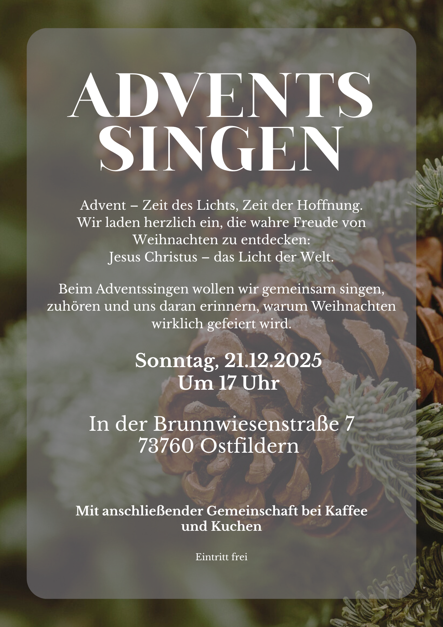 Wir leben von Glaube, Liebe und Hoffnung in unserem täglichen Miteinander. In einer warmen und einladenden Gemeinschaft fördern wir den Glauben an Jesus Christus und unterstützen uns gegenseitig auf unserem Weg. Unsere Veranstaltungen und Aktivitäten bieten Raum für persönliche Beziehungen und das Teilen von Erfahrungen. ​